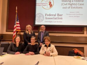 With these bleak numbers in mind the Eastern District of Michigan Chapter and the Civil Rights Section kicked off the new year on January 7 with a very well attended and engaging program on the Michigan’s eviction crisis and what federal civil rights laws are implicated in eviction cases.