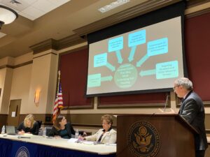 A key theme of the panel was the crucial need for representation in eviction proceedings. Benton’s data showed that Michigan tenants rarely face eviction proceedings with counsel—only 2% of tenants in Washtenaw County were represented by counsel, while 90% of landlords were represented. Judge Blount then spoke to the specific situation in Michigan’s largest landlord-tenant court, 36th District in Detroit. She explained that the three—that’s right, only three—judges who handle the landlord-tenant docket at her court handle over 30,000 eviction filings annually. They do this in two-a-day court sessions hearing 70 cases each a day. She explained that half of the cases are resolved in consent judgments. Judge Blount acknowledged the low rate of representation for tenants, even though the court provides a legal clinic and a diversion program for individuals in HUD-subsidized housing. She also reminded the audience that landlord-tenant cases are brought under the state’s summary procedure rules, which require complete adjudication of the claim within 56 days of filing the Complaint.